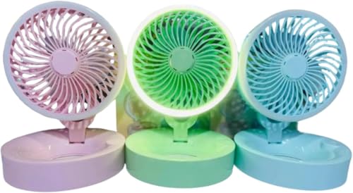 Generic - مروحة شحن اطارليد مدور بكشاف قابلة للشحن USB - تبريد قوي وتصميم عصري - مزودة بكشافة ليد اضاءه قابل للتعديل 360 درجة مكتب - متعدد الألوان -1 عدد المنافذ: 2
