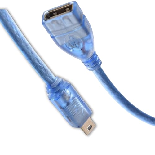 Generic - كابل محول USB - نوع ايه انثى الى USB ميني 5 دبابيس ذكر - كابل شحن وبيانات للاجهزة مثل وحدات التحكم في الالعاب والكاميرات ونظام تحديد المواقع - دعم او تي جي - ازرق