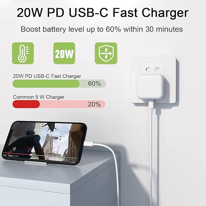 Generic - USB C Charger 20W Super Fast Power Supply with C to Lightning Cable - White