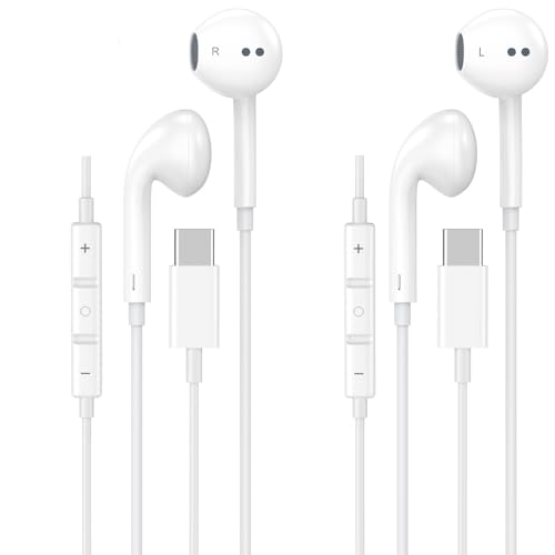 CREHAO - USB C Headphones for iPhone 15 16,2 Pack USBC Type C Earbuds Wired in-Ear with Mic & Volume Control Compatible with iPhone 16 15 Pro/Pro Max, iPad Pro, Galaxy S25 S24 S23 Pixel 9 8 7 USB-C Jack