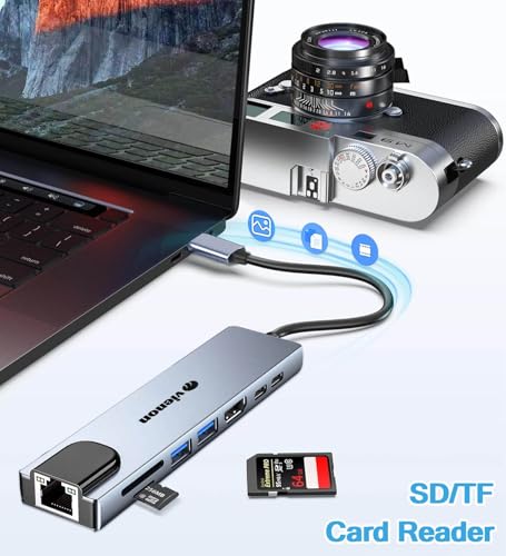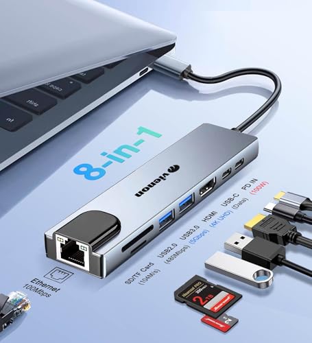 vienon - USB C Hub Ethernet HDMI Adapter, 8 in 1 USB C Docking Station with 4K HDMI, RJ45 Ethernet, SD/TF Card Reader, USB 3.0/2.0, PD 100W, USB C, LAN USB C Dongle for MacBook Pro/Air, iPad Pro, XPS, etc