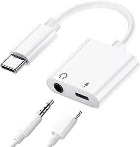 - 3.5mm USB Type C to Headphone and Charger Adapter, 2 x 1 Type C to Aux Audio Jack and Quick Charge Compatible with All Type C Phones - White