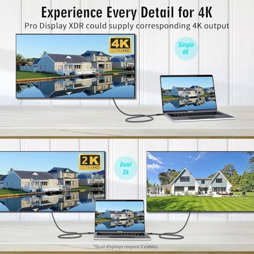 Generic - كيبل USB-C الى HDMI، 4 كيه الترا اتش دي، طاقة 240 واط، نقل بيانات 20 جيجابايت في الثانية، مضفر، اسود