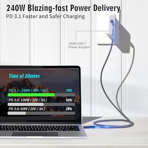 - توصيل طاقة 240 واط: مزود بقدرة شحن قوية 240 واط، مما يسمح لك بشحن اللاب توب أو الجهاز أثناء نقل محتوى الفيديو إلى شاشتك في نفس الوقت
