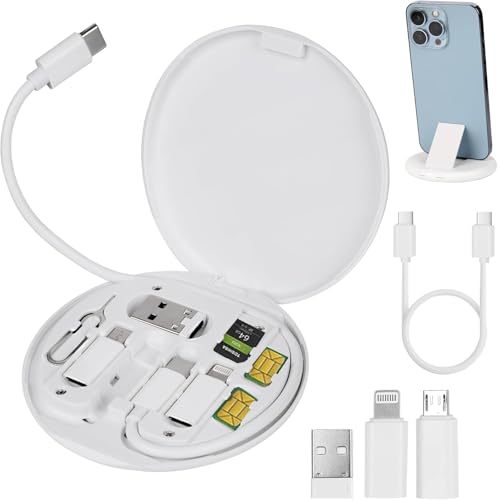 Generic - USB C to Lightning Adapter Kit,Multi Charging Cable Case Convertor USB C to Type C/iOS Device/Micro Adapter Travel Data Cable Set Contains Card Storage,Phone Holder, Tray Eject Pin (White)