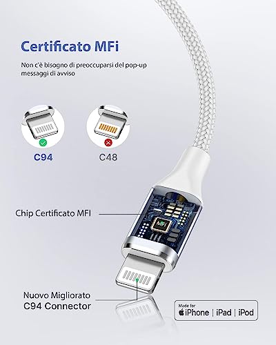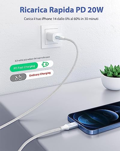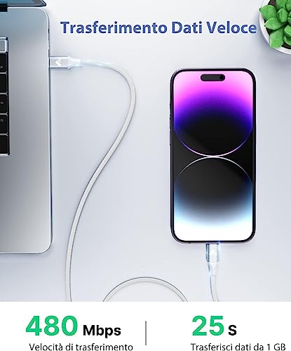 - [PD Fast Charging & Data Transmission]: Aioneus USB C to Lightning charging cable supports PD Fast Charge 3A, charge an iPhone 12 from 0% to 50% in 30 minutes, almost 3 times faster than normal charger. And it also supports data transfer between your iPhone and USB-C laptop or desktop. Data transfer rates up to 480Mbps.