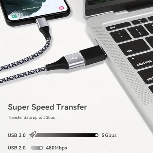 - يدعم محول USB سي إلى USB سرعة نقل البيانات حتى 5 جيجابايت في الثانية، مما يسمح لك بمزامنة الصور والأفلام والأغاني في ثوانٍ. كما يدعم محول الشاحن هذا أيضًا خرج طاقة يصل إلى 36 وات (12 فولت 3 امبير) للشحن الفعال.
