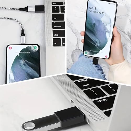 Welldiea - محول USB سي إلى USB، محول او تي جي من نوع سي ذكر إلى USB 3.0 أنثى، محول ثاندربولت 4/3 إلى USB لآيفون 15 برو ماكس بلس وماك بوك برو اير وسامسونج جالاكسي واي باد (أسود)