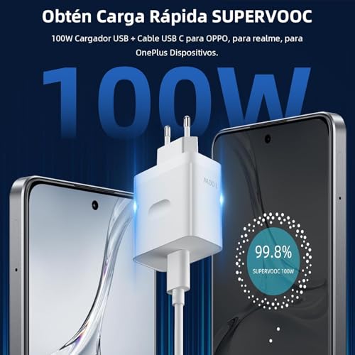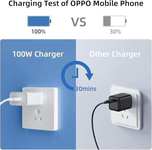 TopPrime - USB Charger & USB C Cable 100W SuperVOOC for OPPO Reno 10 Pro 10 Pro + 5G, 8A Type C Fast Charging Adapter Cable 1M for OPPO Find X6 Pro X7 Ultra Realme 11 Pro + Realme GT6 GT Neo