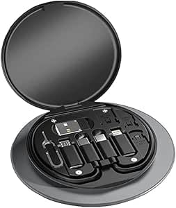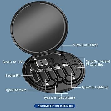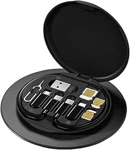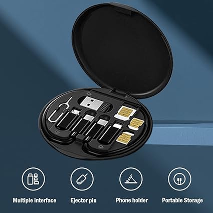 - متعدد الوظائف: علبة تخزين أنيقة تضم كابلات USB متنوعة مع محول Type-C ومايكرو USB ولايتنينج، مع أداة إخراج شريحة SIM مدمجة