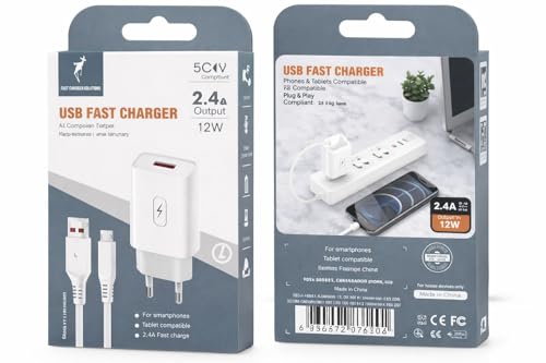 Generic - USB Fast Charger, 2.4A Wall Adapter, White, Micro USB Cable Included, Compatible with Android Phones, 12W