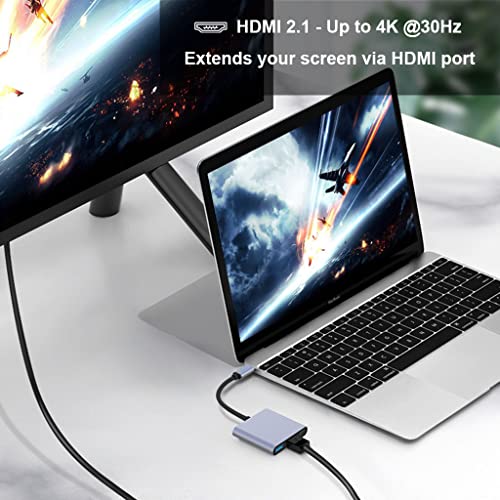 - 3 in 1 Expansion: The docking station hub bridges the gap between your laptop’s (also Tablet / Phone / Desktop) USB-C port and 4K@30Hz HDMI, USB-A / USB-C data ports, as well as high-speed pass-through charging with Power Delivery. Blazing Speed: high-speed pass-through charging to your laptop at up to 100W. Sync data at blazing speeds up to 5Gbps—fast enough to transfer an HD movie in seconds.
