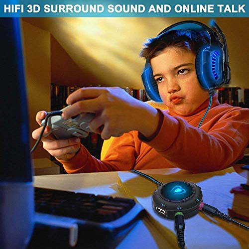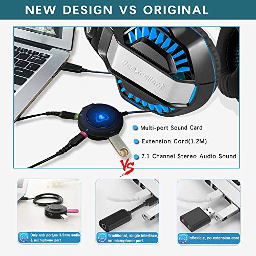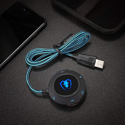 Generic - موزعات USB افتراضية 7.1 قناة بطاقة صوت خارجية مع مقبس ميكروفون AUX 3.5 ملم للكمبيوتر والألعاب وسماعات الرأس وبلاي ستيشن 4 واللابتوب والكمبيوتر المكتبي وويندوز وماك ولينكس، لون أزرق