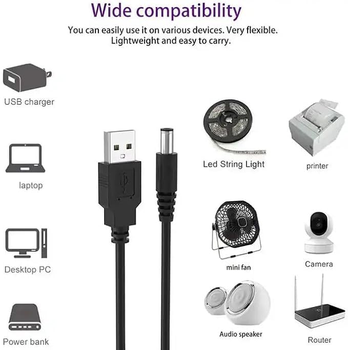 - USB to Jack Cable Extension 5.5x2.1mm Jack 5V to 12V DC Power Steering Power Bank Mobile Phone Power Bank [1 Meter Cord] Actually Work (Tested)