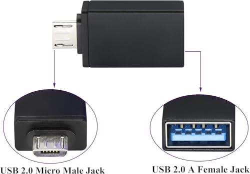 - Transfer and OTG:USB A 2.0 female to micro USB male converter, Versatile OTG adapter is for watching movies, viewing pictures,listening to music and transferring files by connecting a flash driver or camera.you can sync, charge and transfer data. Data transfer speed is at the standard of USB 2.0/480 Mbps/s.