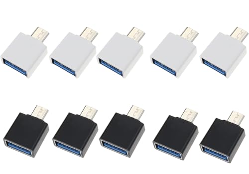 InkBamboo - USB to Micro Adapter 10packs Micro USB Male to USB A Female On-The-Go OTG Adapter for Android Smartphone Tablets More USB and Micro Devices (White) 10 Packs,Micro OTG Adapter (Black+White)