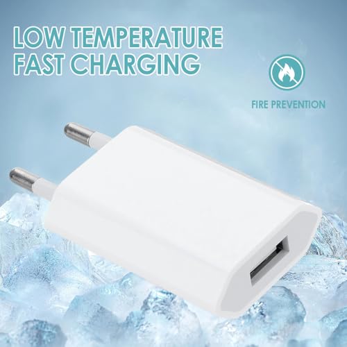 - 【Safe and Stable】The charging power is 5W 1A.5W AC adapter automatically detects the input current required by the connected device. A fireproof housing with built-in safety features protects your device against over-current, overheating, and overcharging.