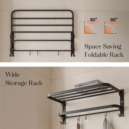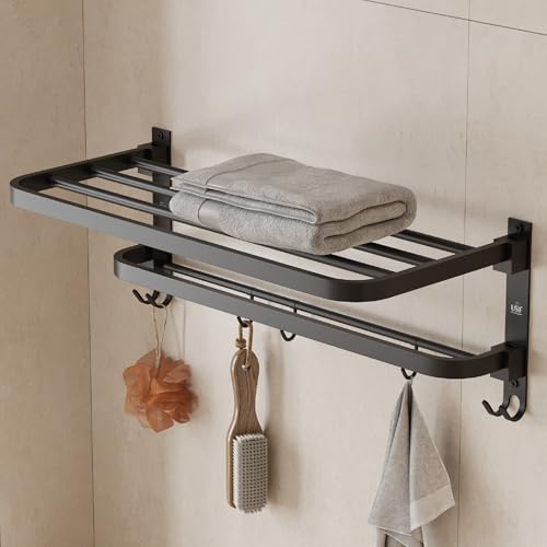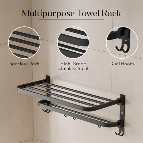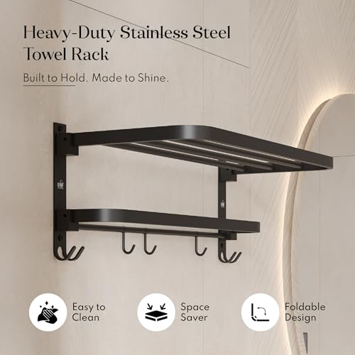 U-S-F BATH ACCESSORIES - USF Bath Accessories 24 Inch 304 Grade Stainless Steel Double-Layer Folding Towel Rack for Bathroom, Strong Build & Space Saving Wall-Mounted Towel Hanger - Black Finish (Pack of 1)