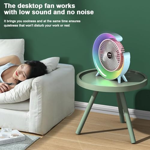USHOP - USHOP Desk Fan, 360° Rotatable Desk Fan, 3 Speeds Adjustable with Ambient Light, 1800mAh Rechargeable Travel Fan with Colorful Night Lights for Bedroom Home Office Outdoor
