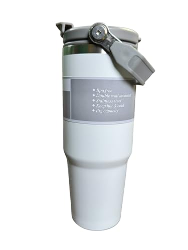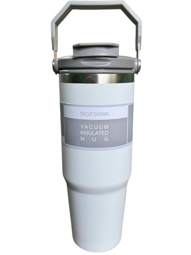 USHOP - USHOP Thermal Mug with Handle Leak-Proof Straw Insulated Drinking Cup 30oz - Double Wall Stainless Steel Mug for Hot and Cold Drinks, Travel Water Bottle 900ml (White)