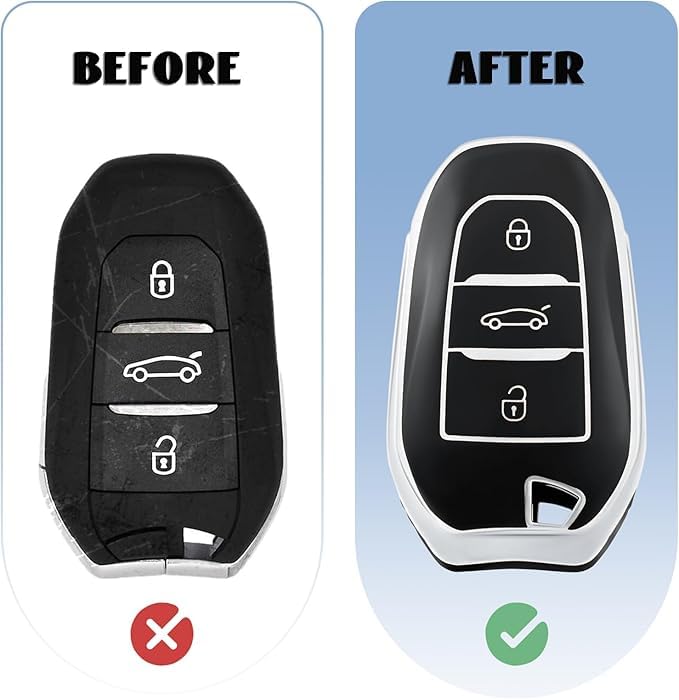 - ٣) تصميم عصري: غطاء بلونين أسود وفضي يضيف لمسة أنيقة مع الحفاظ على وظائف المفتاح الأصلية