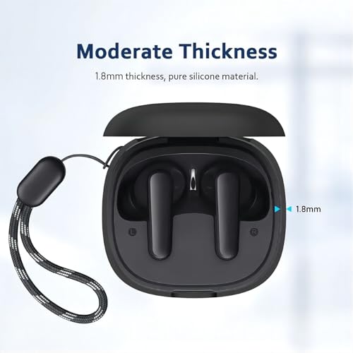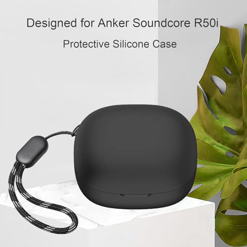 USTIYA - USTIYA Case for Ankey Soundcore R50i Protection Cover Full-Body Soft Silicone with Lanyard Headphone Accessories Funda Carcasa (Black)