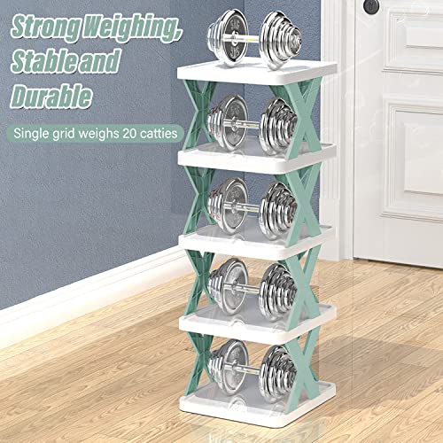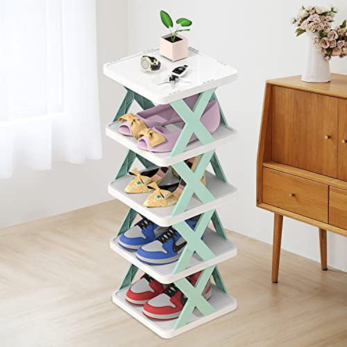 Utapossin - 5 Tier Small Shoe Rack, Shoe Organizer Shelf, Multifunctional Shoe Rack, Removable and Stackable Home Shoe Rack, Vertical Shoe Tower for Home, Bedroom, Office Blue