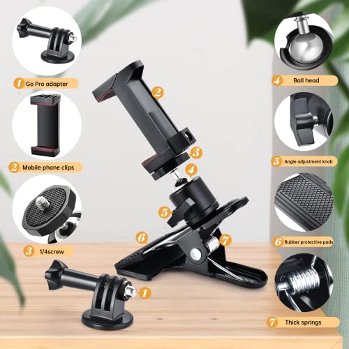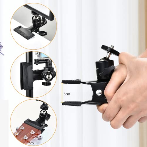 - 【تعديل الزاوية بدون مجهود】 يسمح حامل المشبك المعدني برأس كروي دوار، بإمكانية الدوران 360 درجة والإمالة 270 درجة في كلا الجانبين لأي زاوية تصوير مرغوبة، مما يوفر لك رؤية مثالية لتوثيق اللحظة. الحد الأقصى للحمولة: 3 كجم. قم بشد مقبض القفل لتثبيت رأس الكرة بأمان استثنائي.