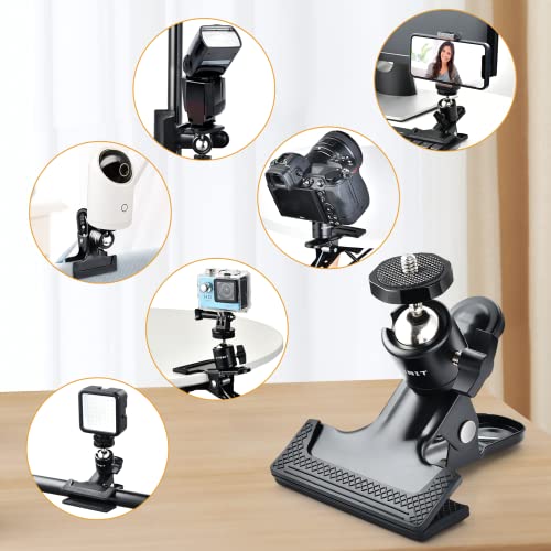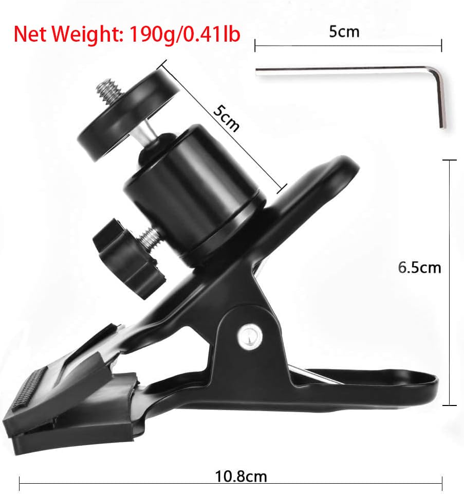 - 【مشبك متعدد الوظائف برأس كروي】مشبك زنبركي لتثبيت الكاميرا مع رأس كروي دوار 360 درجة، رأس الحامل الثلاثي ومسمار لولبي 1/4 بوصة - 20 في الأعلى، مناسب لمعظم كاميرات الفيديو DSLR SLR وخلفيات الاستوديو، إذ أنه يثبت الكاميرا في أي وضعية تريدها أثناء الأنشطة منخفضة التأثير مثل المشي والمشي لمسافات طويلة والتسلق.
