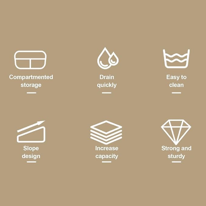 - تصميم مبتكر: من السهل ترتيب الأدوات ذات الأحجام المختلفة بدقة وتركها تجف في الهواء بسبب الشكل شبه المنحرف لحامل الأدوات، والذي يحتوي على أقسام عالية ومنخفضة.