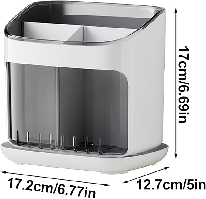 - كما أنه سهل التنظيف. حامل الأدوات بالكامل قابل للإزالة، مما يجعل التنظيف سهلاً. ما عليك سوى مسحه أو وضعه في غسالة الأطباق للحصول على نظافة في متناول اليد دائمًا.