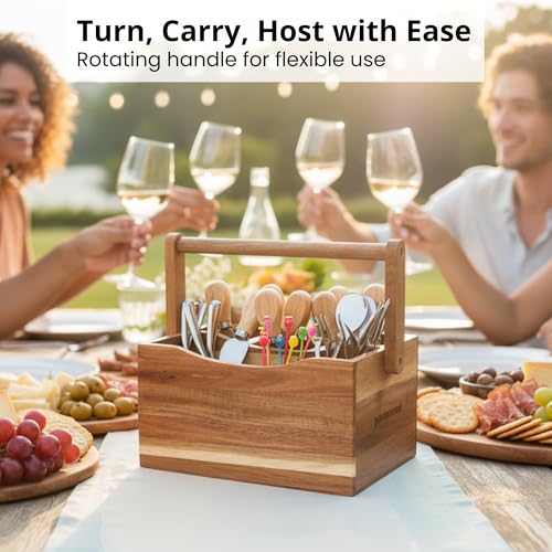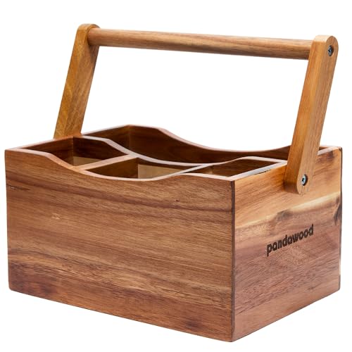 PANDAWOOD - Utensil Caddy for Parties - Acacia Wood Silverware Caddy for Party Kitchen Countertop - Utensil Holder for Party Kitchen Counter - Cutlery Flatware Caddy Silverware Holder for Countertop Organizer