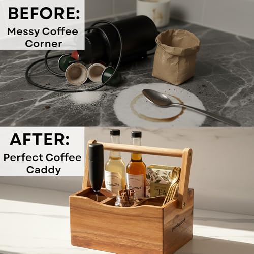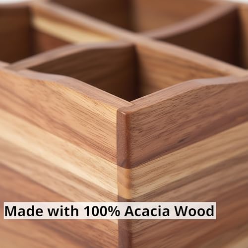 - Premium Acacia Wood Cutlery Caddy Outlasts Plastic Silverware Holders - Sustainably sourced wooden construction with rich farmhouse finish. Splinter-free edges protect hands. This kitchen utensil holder for countertop elevates any setting beautifully.
