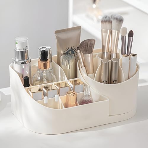 - يتميز هذا المنظم بصندوق تخزين يدور بزاوية 360 درجة، مما يجعل التنقل بين مجموعة مستحضرات التجميل الخاصة بك أمرًا سهلاً للغاية. يمكنك تدوير المنظم بسهولة لاختيار المنتجات التي تريدها دون الحاجة إلى البحث بين الفوضى، مما يجعل روتين مكياجك أكثر سلاسة ومتعة.