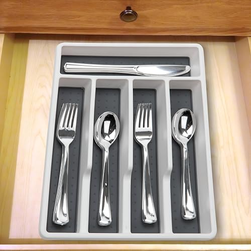- Designed for safety and stability, the silicone organizer's non-slip construction prevents shifting during drawer operation, while the five-section layout keeps knives, forks, and spoons separated for quicker access, neater presentation, and reduced clutter in any environment.