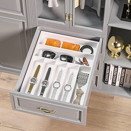 - 【Multifunctional Management】: Our multi-purpose flatware organizer is not only suitable for storing silverware, but also suitable for storing disposable tableware, sundries, cosmetics, hair accessories, repair tools, art sets, stationery. With this tray, drawers in the kitchen, bathroom, dresser, room, office can be efficiently organized.