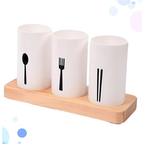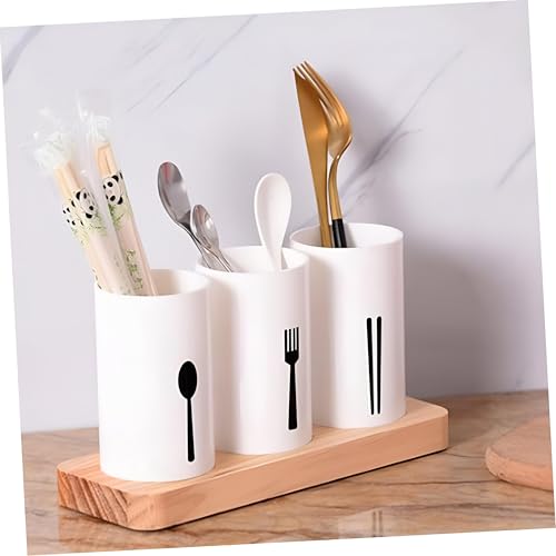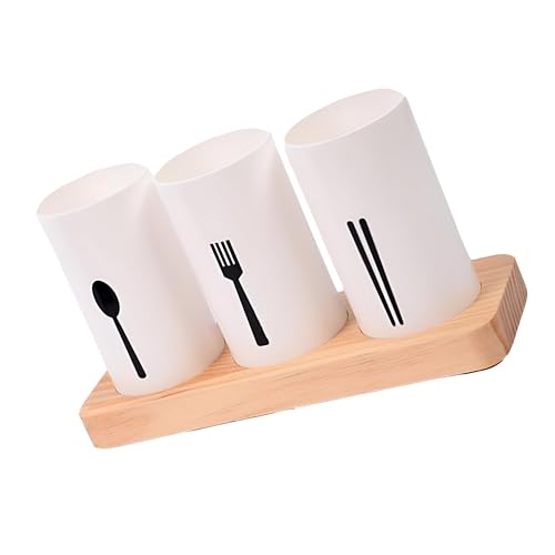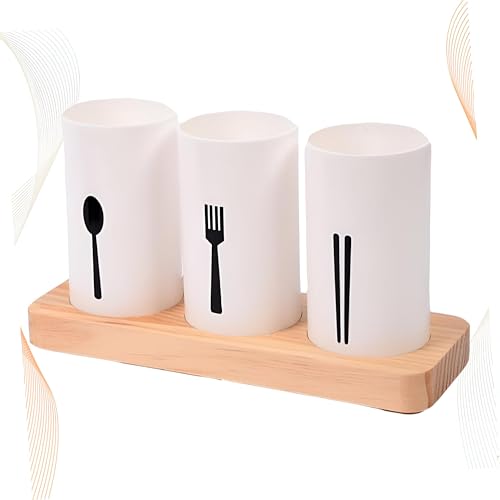 - The Kitchen Utensil Organizer is made from durable PP material and features a wooden base, providing an elegant yet practical solution for storing cutlery and utensils. Its compact design, measuring approximately 9.3x3.3x3.5 in, allows it to fit neatly on your countertop without taking up too much space, making it suitable for both home and commercial environments including restaurants, buffets, and hotels.