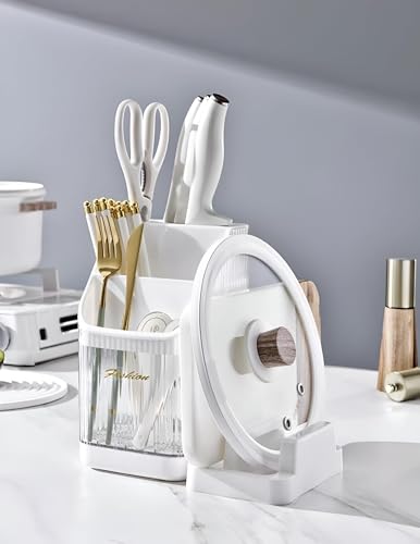 - 4-in-1 multifunctional kitchen rack featuring slots for spoons, knives, pot lids, and cutting boards—keeping essential tools organized within easy reach.