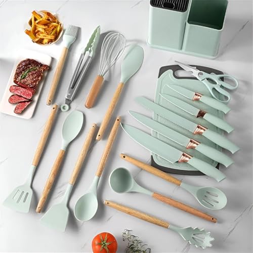 Generic - Utensil Set - Unleash your inner chef with this colorful 19-piece kitchen set, designed with sharp stainless steel blades and sleek walnut handles for the ultimate cooking experience.