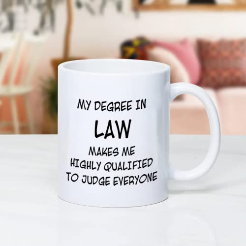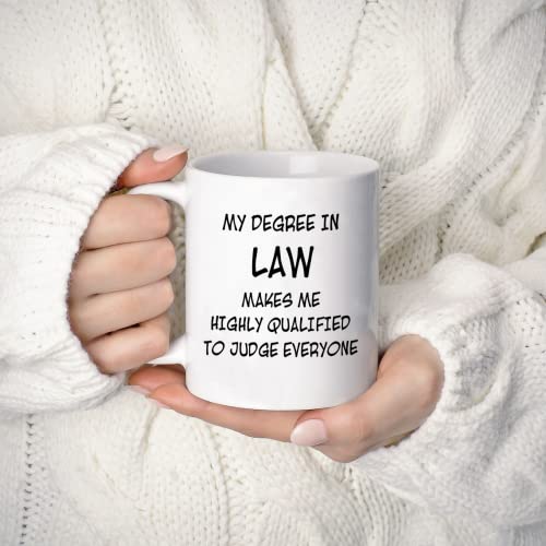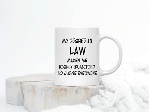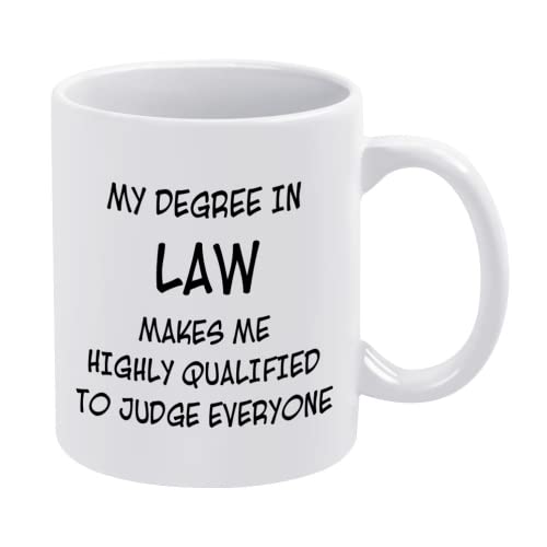 UTF4C - كوب قهوة بعبارة «My Degree in Law Make me High Qualified to Judge Everyone» من يو تي اف 4 سي، أكواب هدايا مضحكة للخريجين وطلاب المدارس في الصف والكريسماس وأعياد الميلاد والعطلات، 311.84 جرام