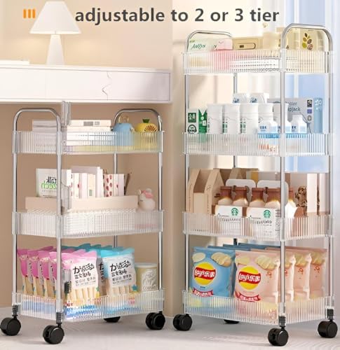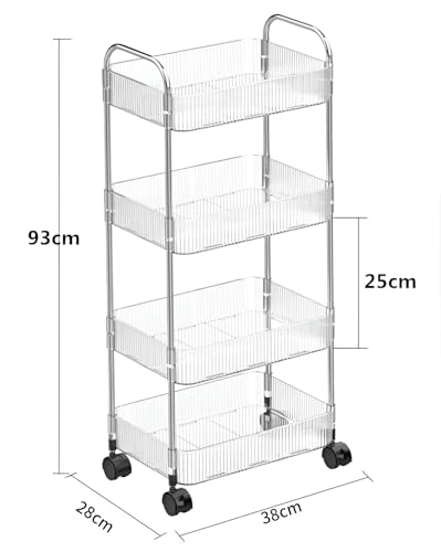 - Constructed with high-quality stainless steel frames and dense transparent PET plastic shelves, this cart offers exceptional durability and resistance to rust, while the clear design allows easy visibility of stored items and effortless cleaning after use.