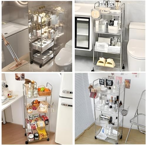 - Versatile enough for use in living rooms, kitchens, bathrooms, bedrooms, offices, hotels, and cafes, this multi-functional cart transforms clutter into elegance by storing everything from snacks and toiletries to linens and cleaning tools, enhancing both functionality and interior aesthetics.