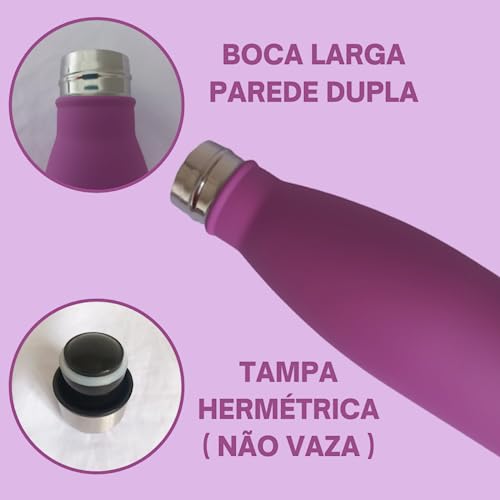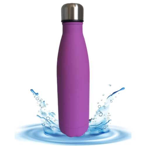 UTIMAIS+ - زجاجة مياه محمولة مزدوجة الطبقات من الستانلس ستيل للمشروبات الساخنة والباردة للجيم من يوتيمايس بلس، أرجواني، 500 مل
