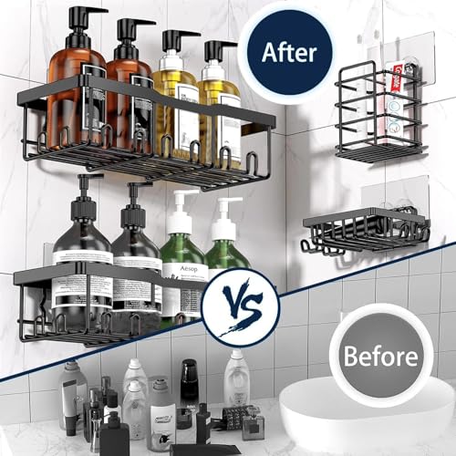 - Provide ample bathroom storage space -5-piece shower caddy storage set includes two large shower shelves, two soap holders, one toothbrush holder, and 15 adhesives, which can easily store toiletries, seasonings, and other daily necessities, making full use of space and creating a clean and tidy home environment.
