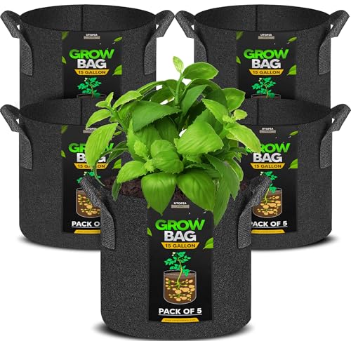 Utopia Home - Utopia Home Plant Grow Bags 5 Pack 15 Gallon, Grow Bags with Handles, Nonwoven Fabric Pots,Pot for Plants & Vegetables