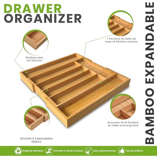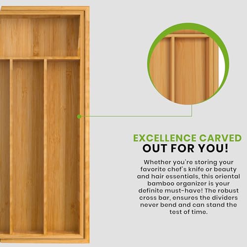Utopia Kitchen - Utopia Kitchen Expandable Bamboo Utensil Drawer Organizer, Silverware Organizer for Cutlery, Flatware Holder (5-7 Slots, Natural) - Pack of 1