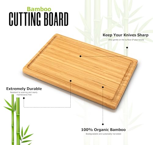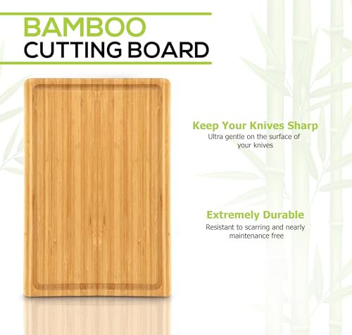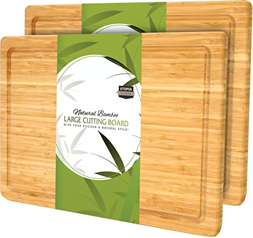 Utopia Kitchen - Utopia Kitchen (Pack of 2) Extra Large Bamboo Cutting Board with Juice Groove - Kitchen Chopping Board for Meat Cheese and Vegetables (17 x 12 Inch)
