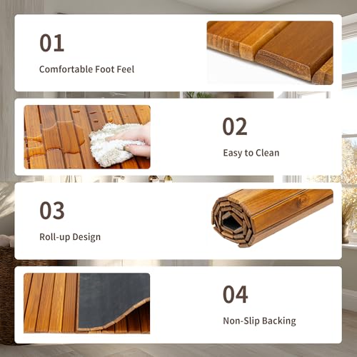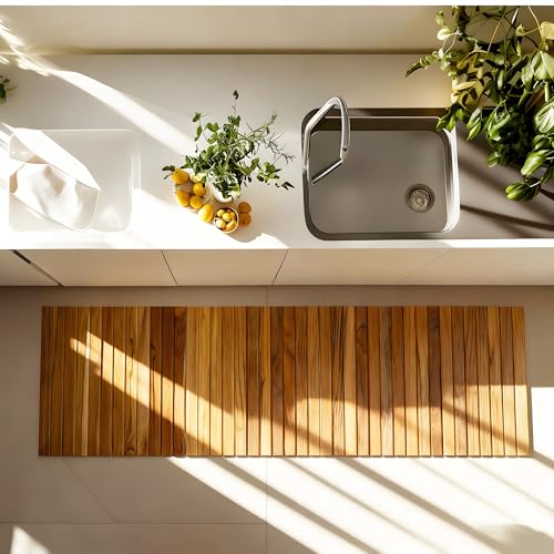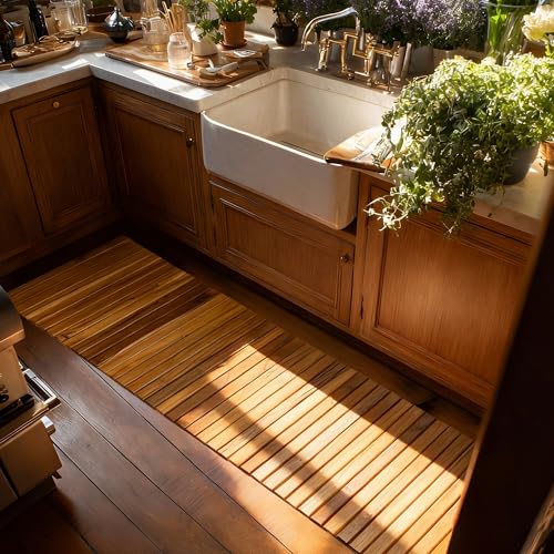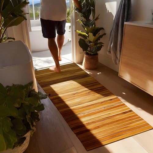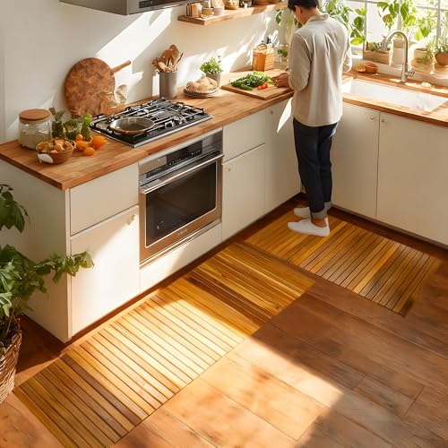 Utoplike - سجادة حمام من خشب الساج للمناطق الجافة، دواسة خشبية للأرضية مع ظهر مطاط مانع للانزلاق، قابلة للطي ومناسبة للمطبخ ومدخل الحمام والتسريحة وديكور المدخل من يو توب لايك
