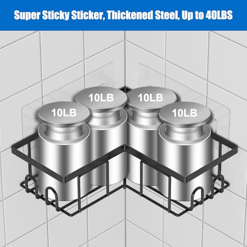- 【STABLE LOAD BEARING】This no-drill shower caddy features clear adhesive that has undergone multiple adhesion tests and can withstand up to 40 pounds. It can meet your daily storage needs and can be used safely even after several months without worrying about items falling.