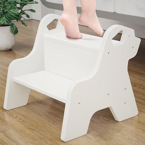Uuoeebb - مقعد اطفال بدرجتين لحوض الحمام، مقعد خشبي للاطفال الصغار للتدريب على استخدام المرحاض والمطبخ (ابيض)